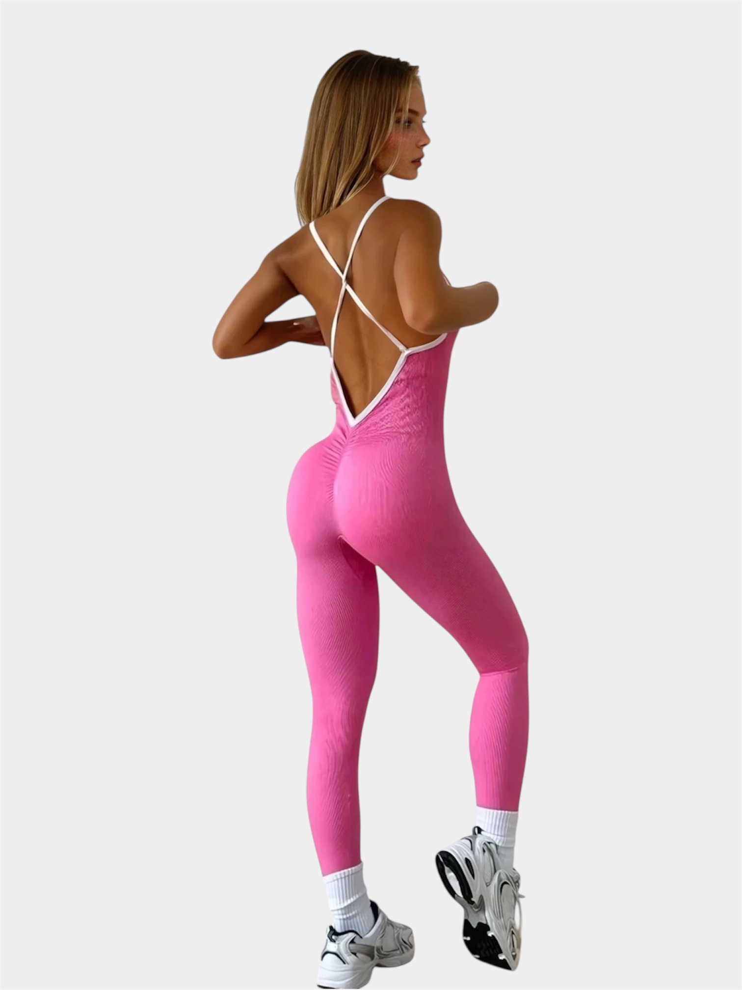 Ιδανικό για γυμναστική, γιόγκα, ή ακόμα και για καθημερινές δραστηριότητες, το ShapeLine Contrast Backless Jumpsuit Barbie Pink συνδυάζει στυλ, άνεση και πρακτικότητα σε ένα μοναδικό σχέδιο που προσαρμόζεται άψογα στο σώμα